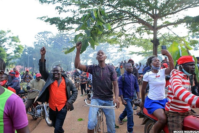"Kyagulanyi!" chorused back the NUP leader's supporters in the vicinity.