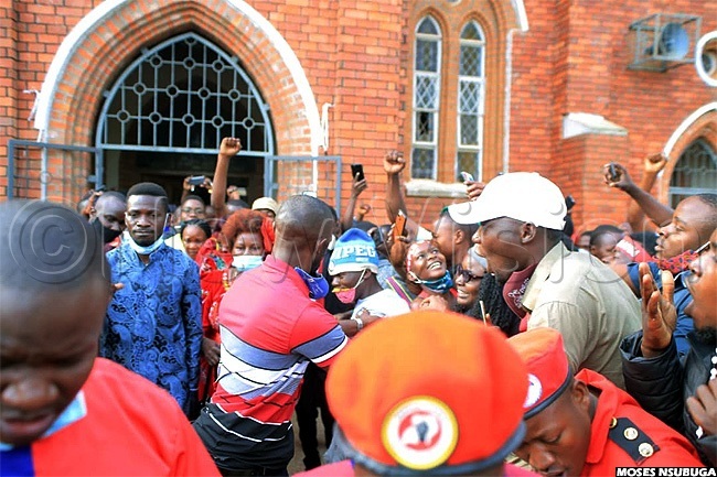 Supporters of National Unity Platform (NUP) presidential candidate Robert Kyagulanyi stormed St. Henry's Cathedral Kitovu in Masaka city to catch a glimpse of him on Sunday.