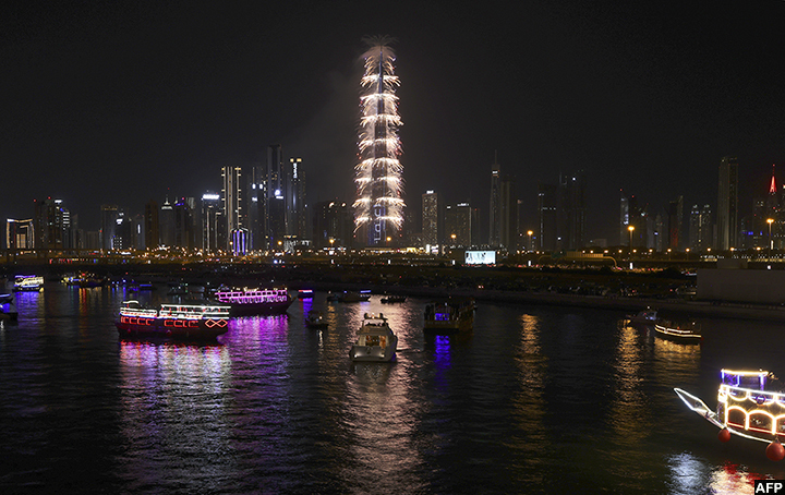 A fireworks and laser show was held in Dubai at the Burj Khalifa, the world's tallest tower, where there has been a slew of new cases. Those watching were required to wear masks and register with identifying QR codes.
